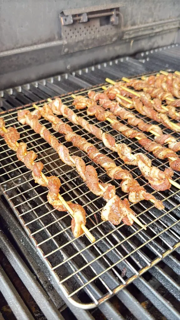 - Once done remove from smoker and take the bacon off the skewers - it's best to do this when they are warm before the sugar crystalizes and hardens. If you get busy and don't get them off in time, just heat them up a little in the oven and they'll slide right off.