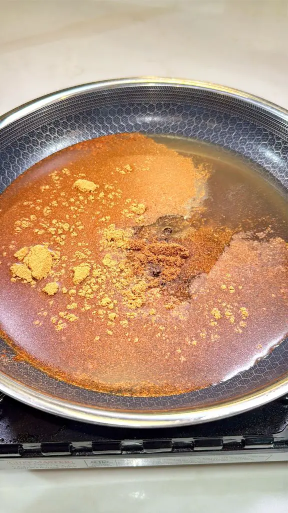 While the ham cooks, make the glaze by mixing apple cider, brown sugar, Fireball whiskey, cinnamon, nutmeg, and cloves in a small saucepan. Cook over medium heat, bringing it to a boil for about 5 minutes, then simmer on low heat for another 10 minutes to thicken.